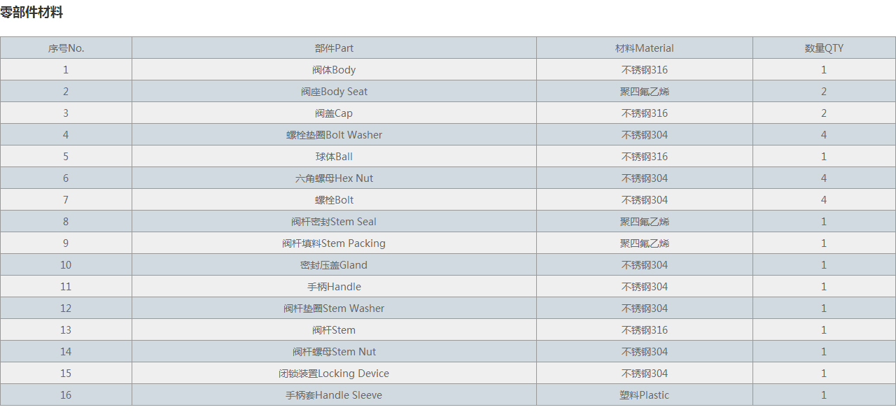 | 1 | 閥體Body | 不銹鋼316 | 1 |