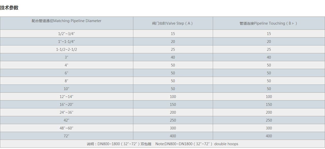 | 說(shuō)明:DN800~1800(32″~72″)雙包箍 Note:DN800~DN1800(32″~72″) double hoops | ||
